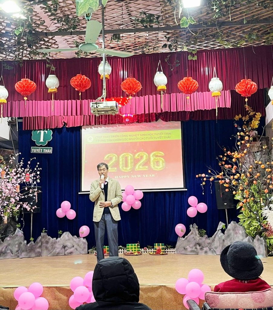 Thay mặt Ban Lãnh đạo, Anh Nhâm Hồng Hải, Giám đốc Trung tâm Chăm sóc sức khỏe Người cao tuổi Tuyết Thái; Phó Giám đốc Trung tâm Vì Ngày Mai kính chúc các Cụ, các Bố Mẹ, người an dưỡng bước sang năm mới tràn đầy sức khỏe, hạnh phúc và sống lâu trăm tuổi.